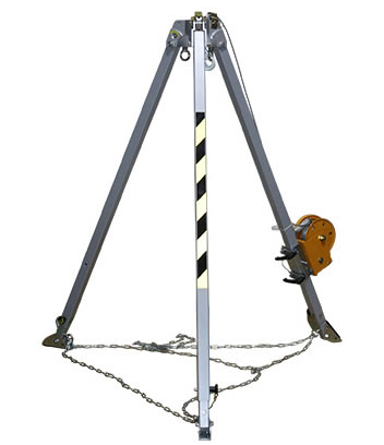 礦井救援過(guò)程中救援三腳架發(fā)揮重要作用,救援三腳架支撐穩(wěn)固,承重量大,還能懸掛防墜器、手拉葫蘆等各種工具,方便救援人員下到井內(nèi)開(kāi)展救援。